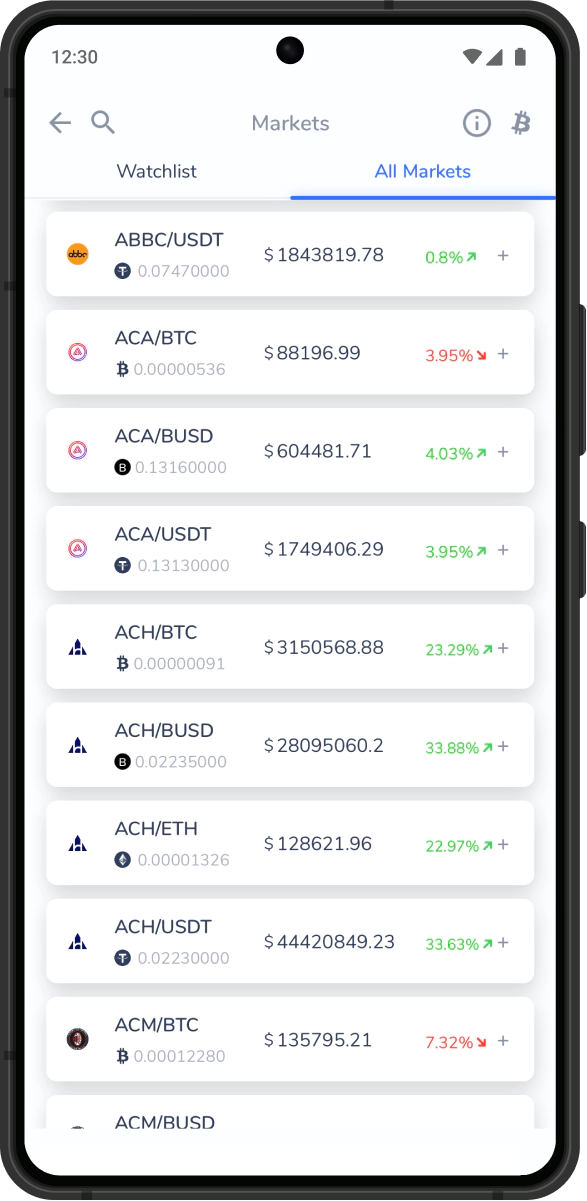 Set up a watchlist to stay up to date on the coins you are interested in and be the first to take advantage of trading opportunities.